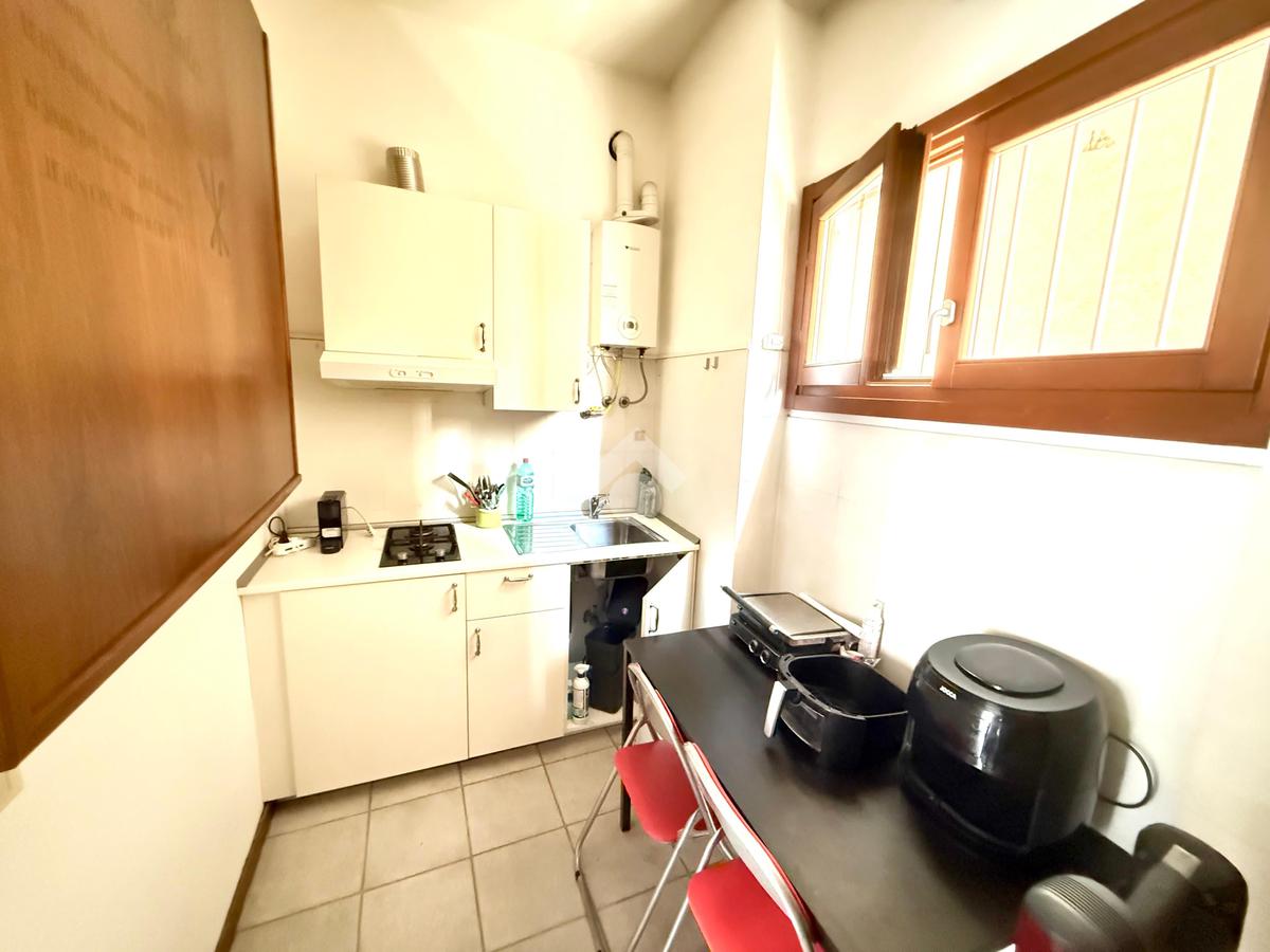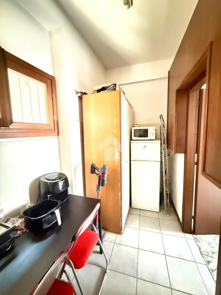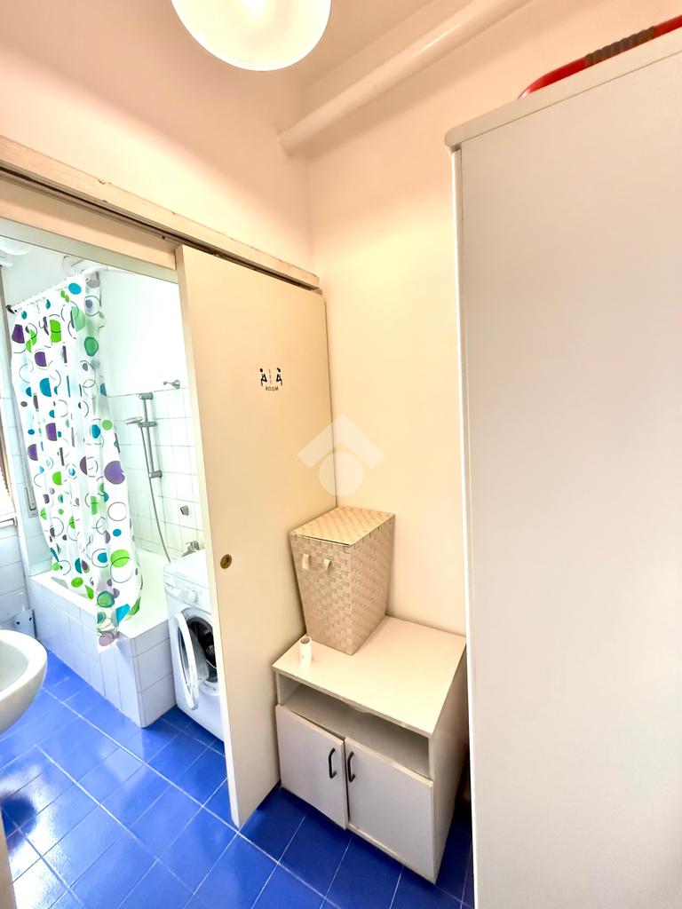 L’appartamento è posto al primo piano, affacciato sul portico condominiale, con ascensore e servizio di portineria, così composto: ingresso su soggiorno/zona notte, dotato di letto matrimoniale, divano e un ampio tavolo, cucina abitabile, antibagno e bagno finestrato con vasca.