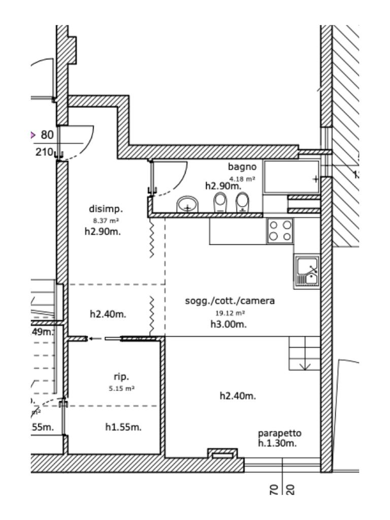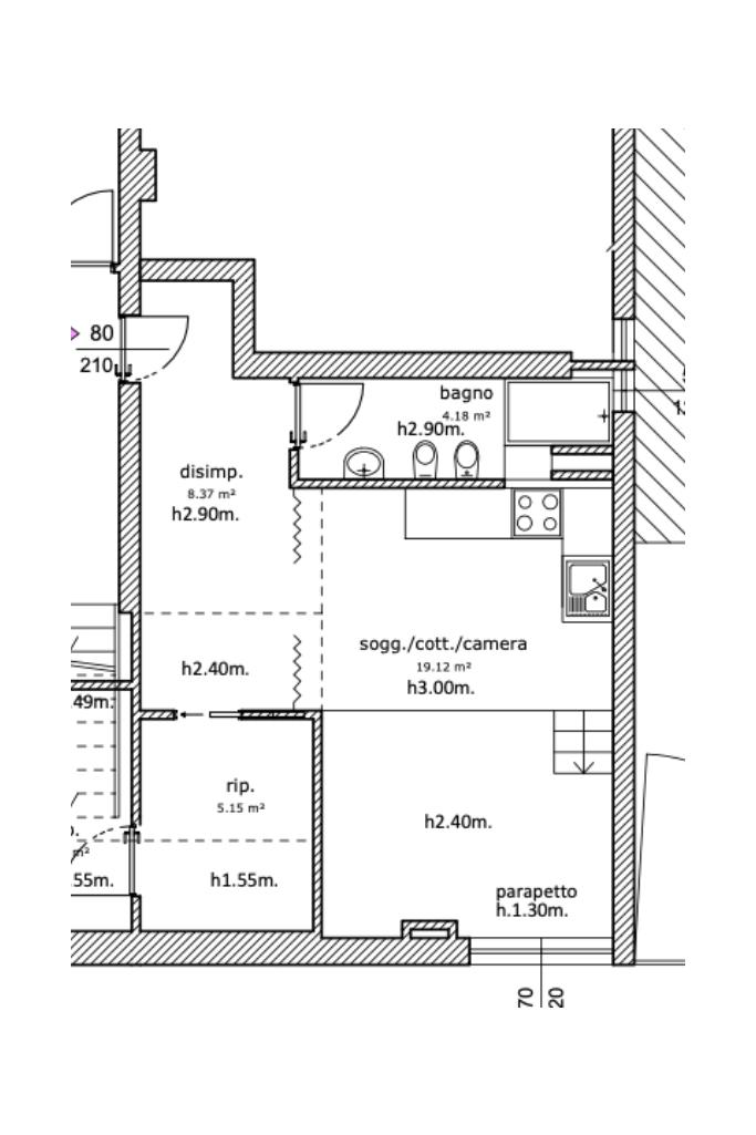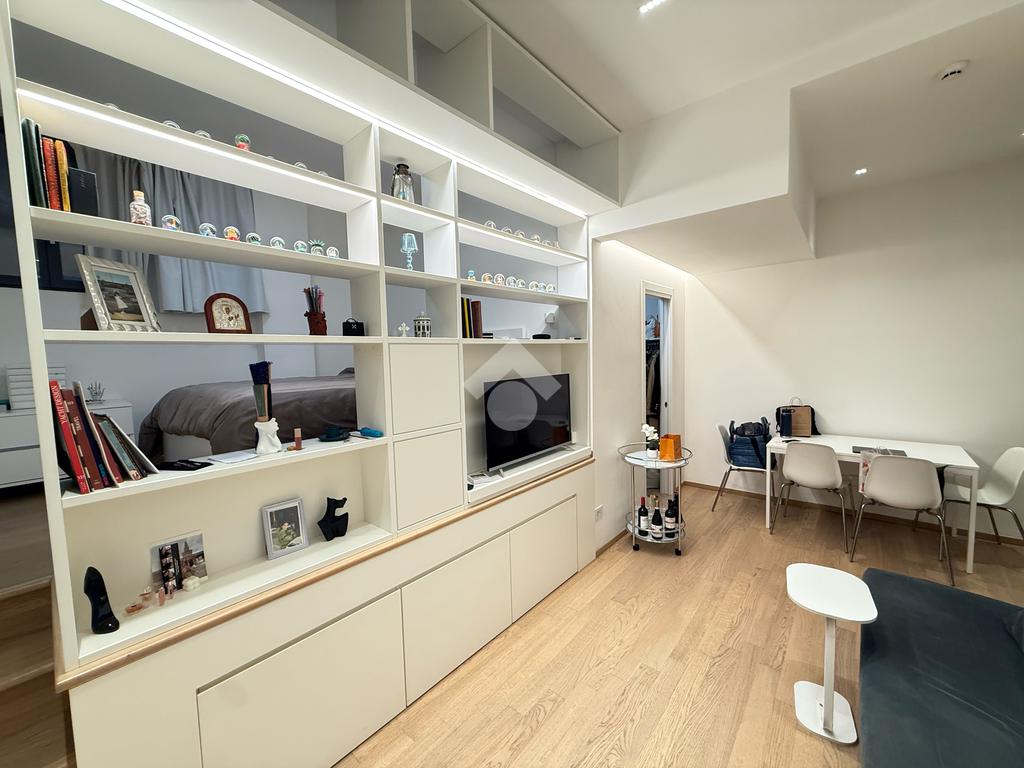 L’appartamento è composto da: ingresso su soggiorno con cucina a vista, bagno finestrato con box doccia, ripostiglio con lavanderia, soppalco con zona notte.