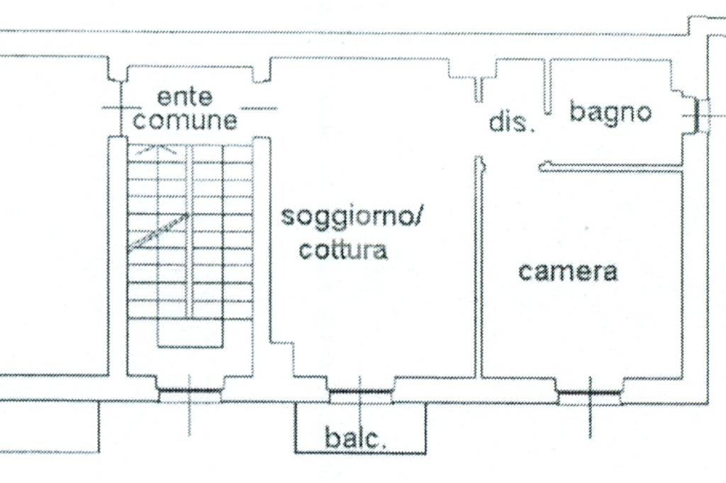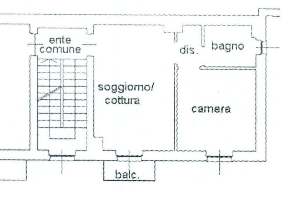 L’immobile è situato al secondo piano senza ascensore ed è composto: ingresso su soggiorno con cucina a vista e balcone con affaccio interno, disimpegno con zona lavanderia, camera da letto matrimoniale, bagno finestrato con box doccia.